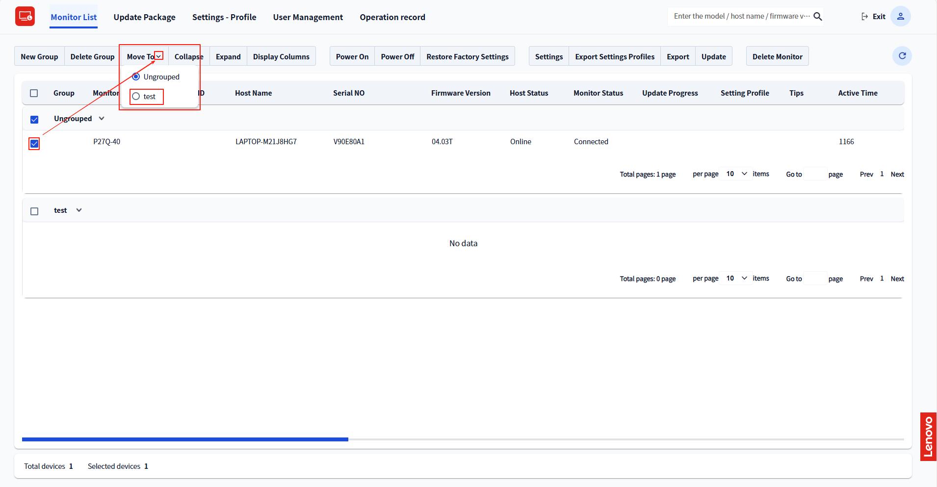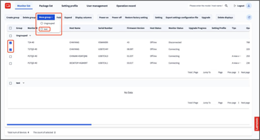 - To move monitors between groups: