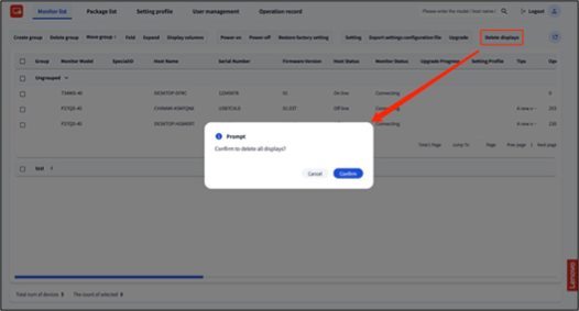 - Click the "Delete Displays" button.
