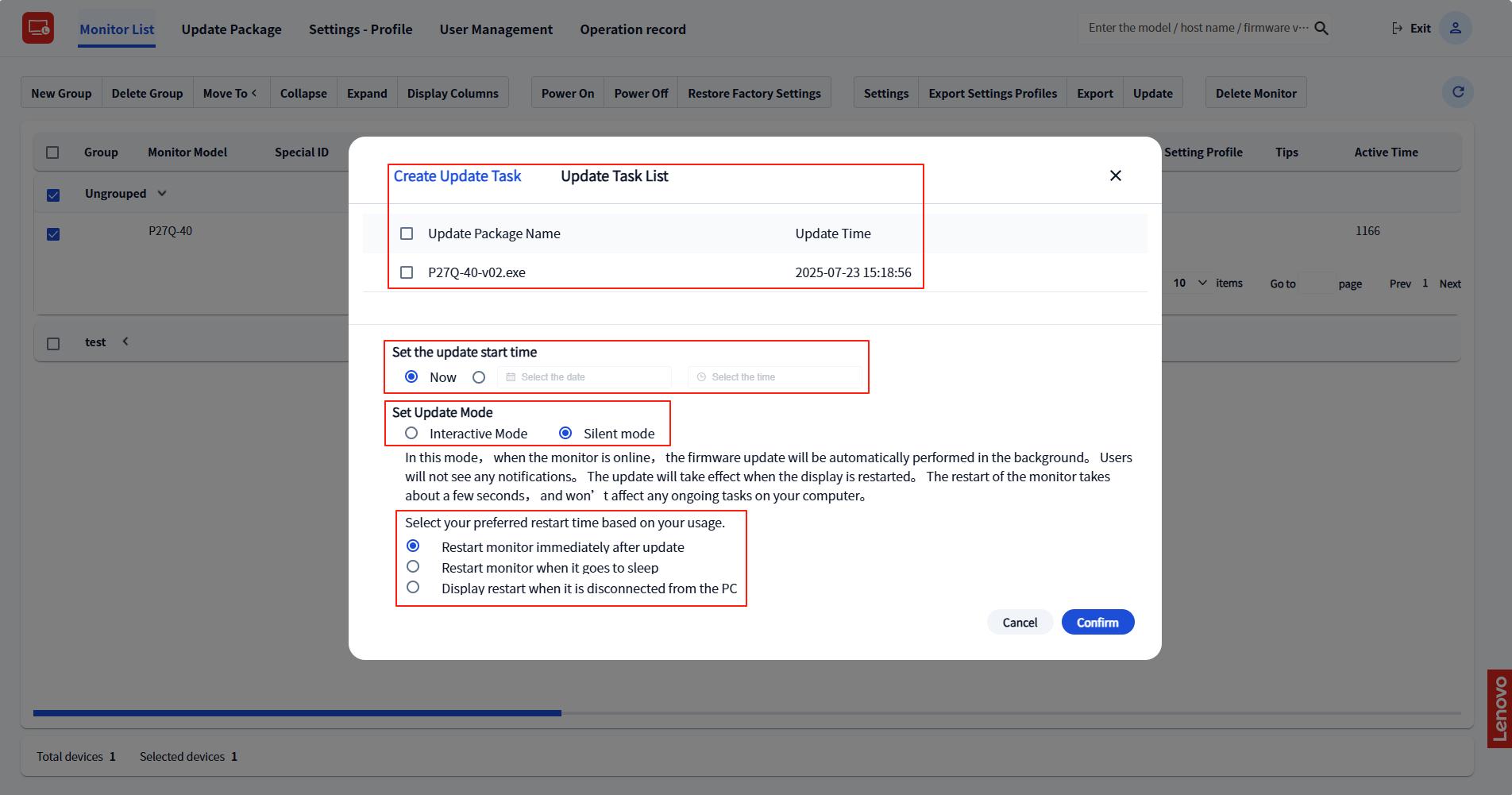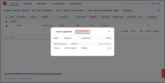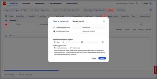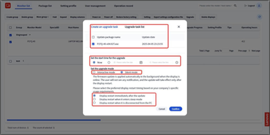 - Click "Confirm". The upgrade task will be created and issued to the