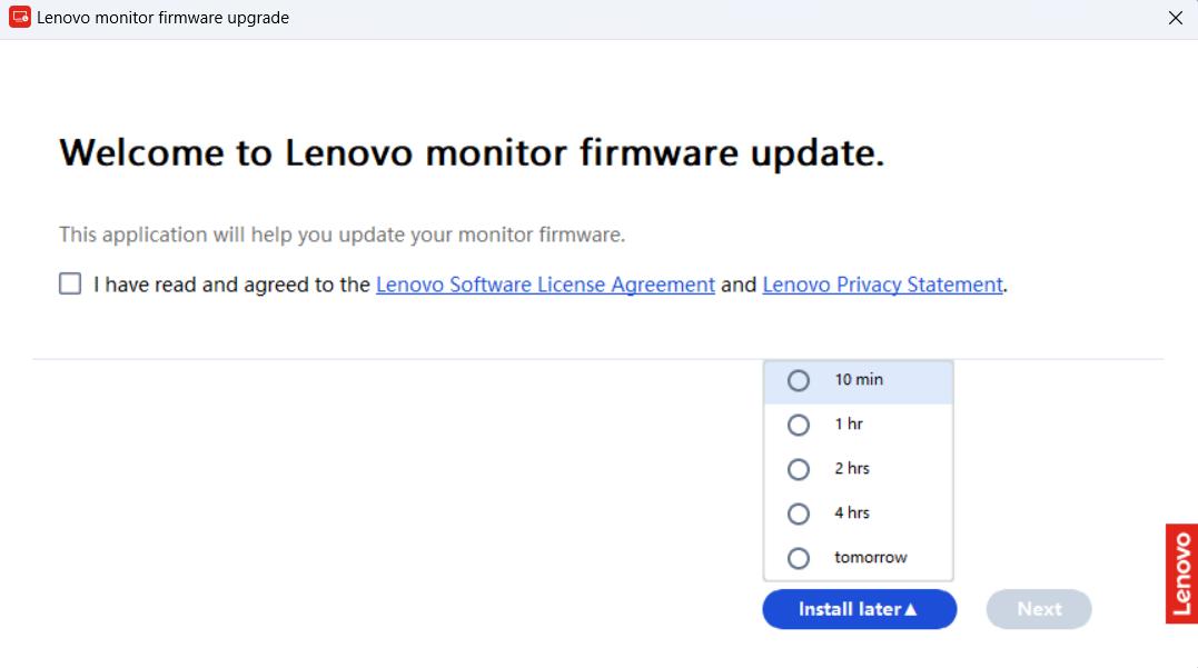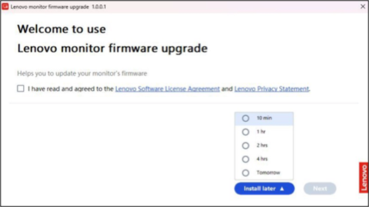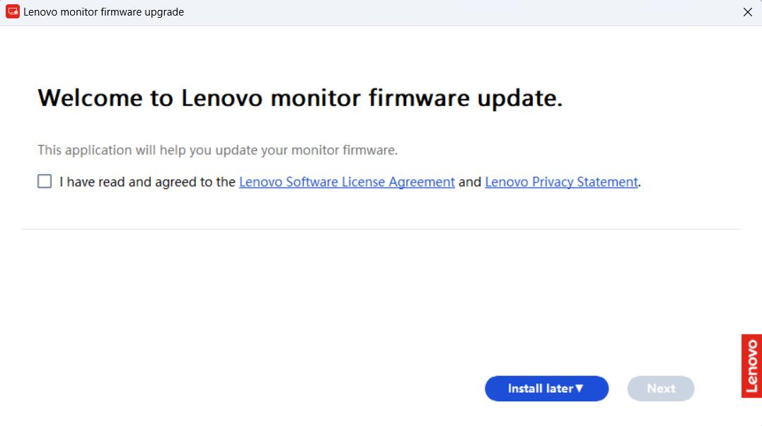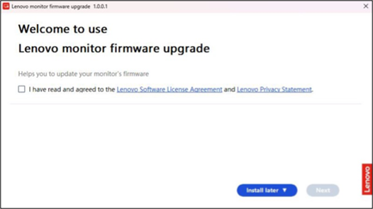 - Users must check: "I have read and agree to Lenovo Software License Agreement and Lenovo Privacy Statement".