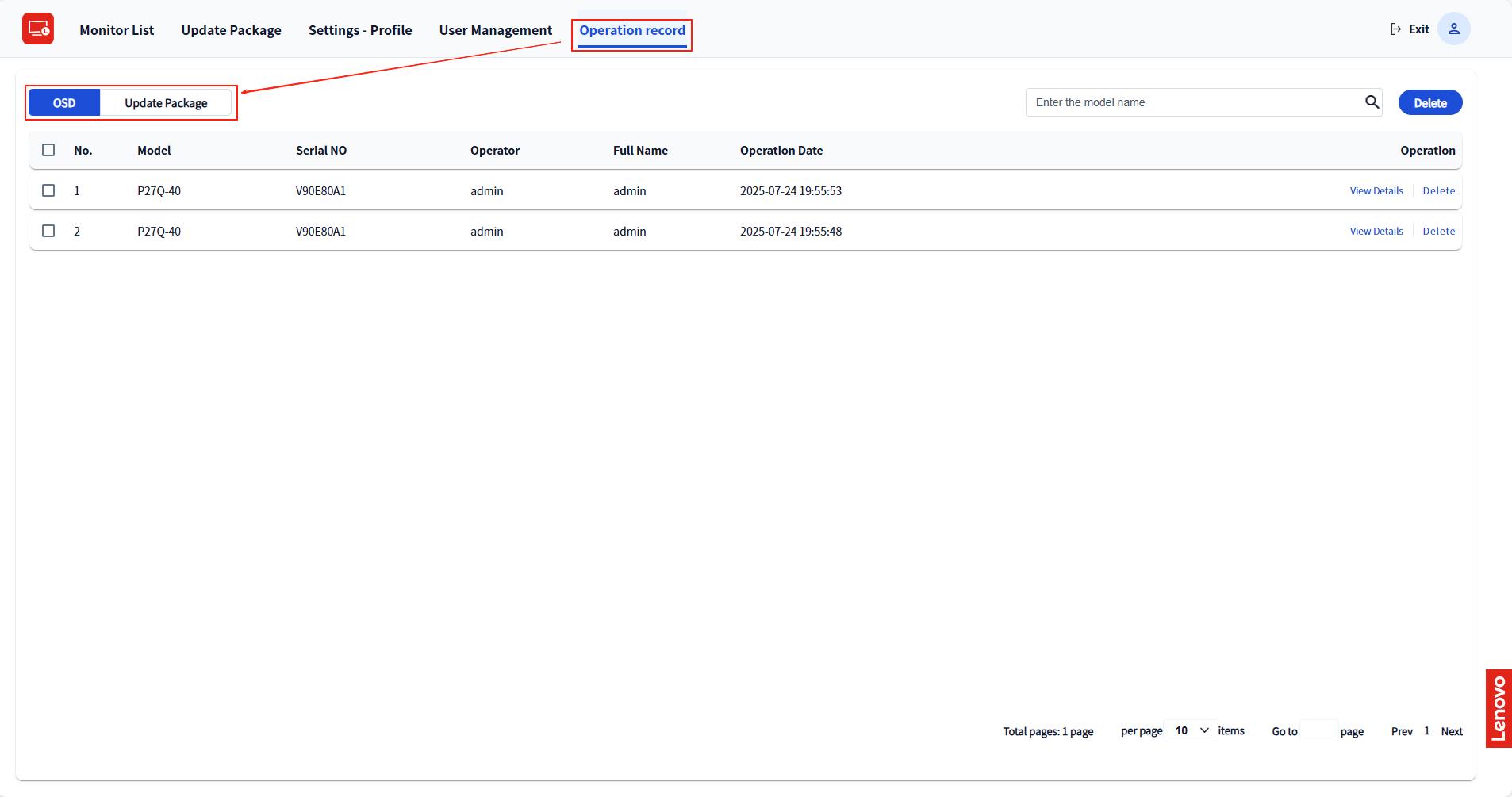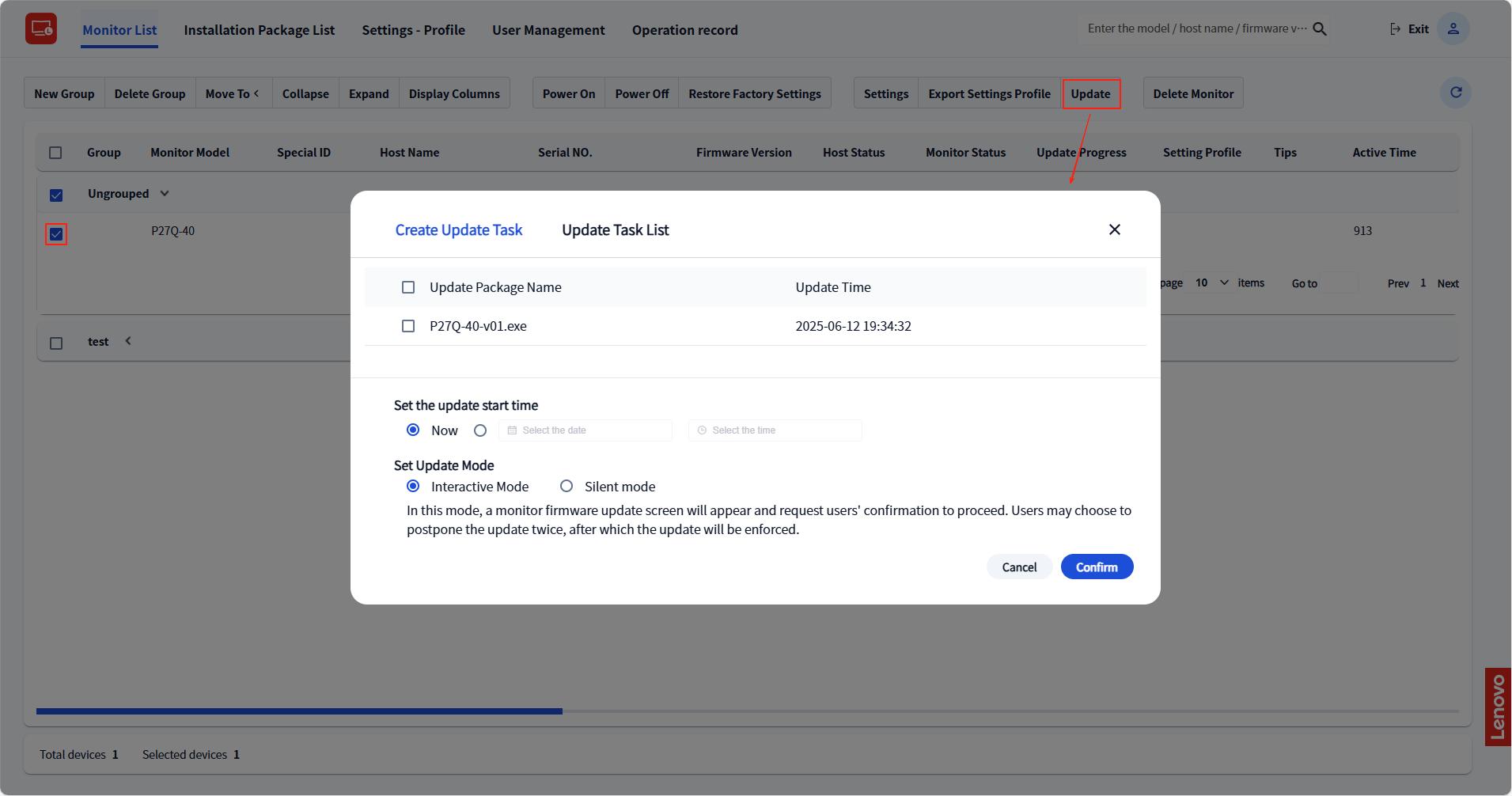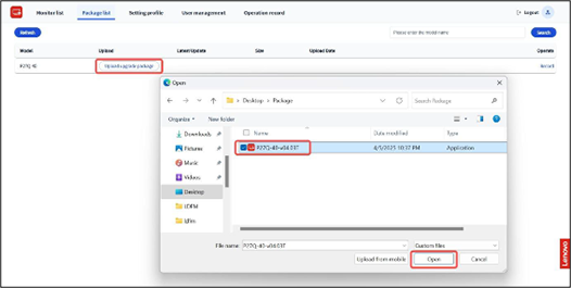 - Select the latest upgrade package. If the package has not been uploaded yet, refer to 3.2.3 Upgrade Package List for instructions.