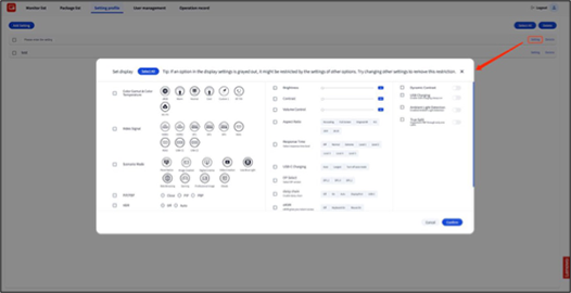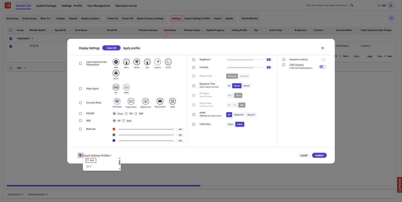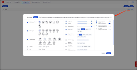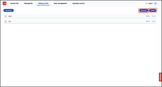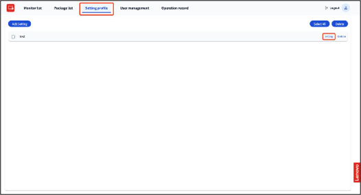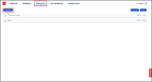 - The new configuration will be stored in the Setting profile list.