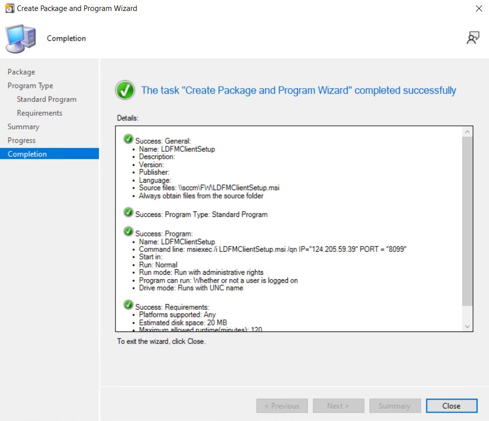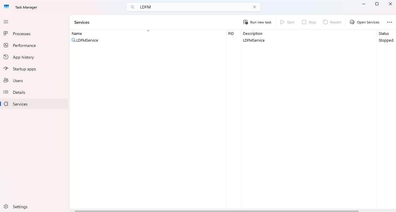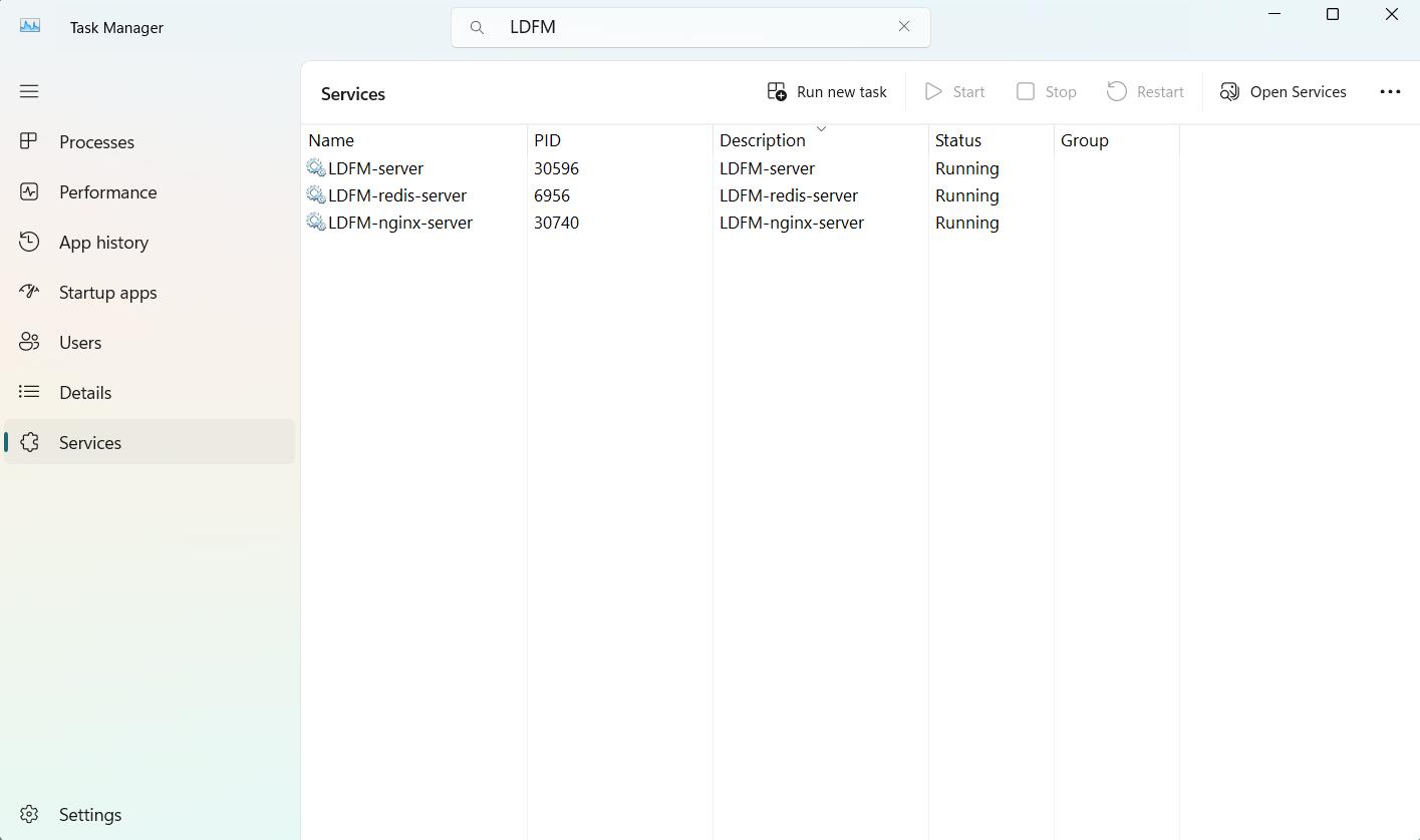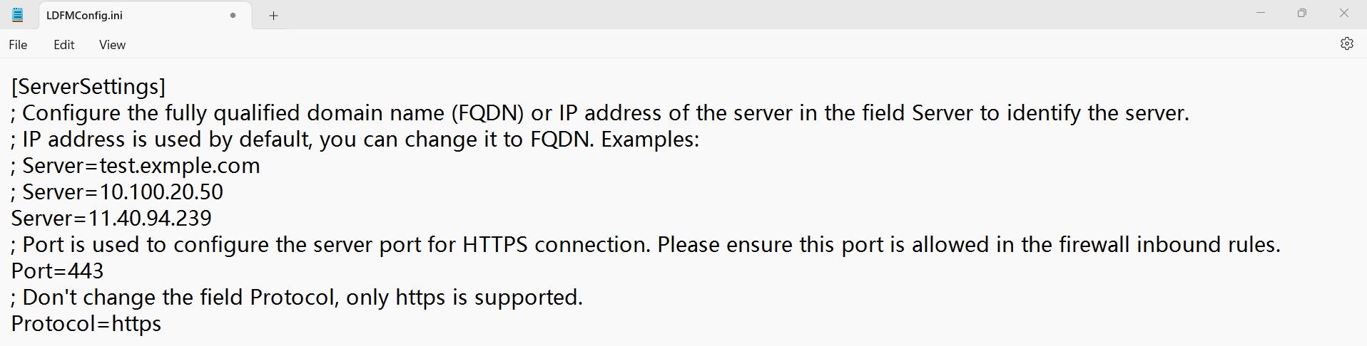 After the installation is completed, an LDFMConfig.ini file will be generated in the same path as LDFMServerSetup.exe. This file will be used during the installation of the LDFMClient.