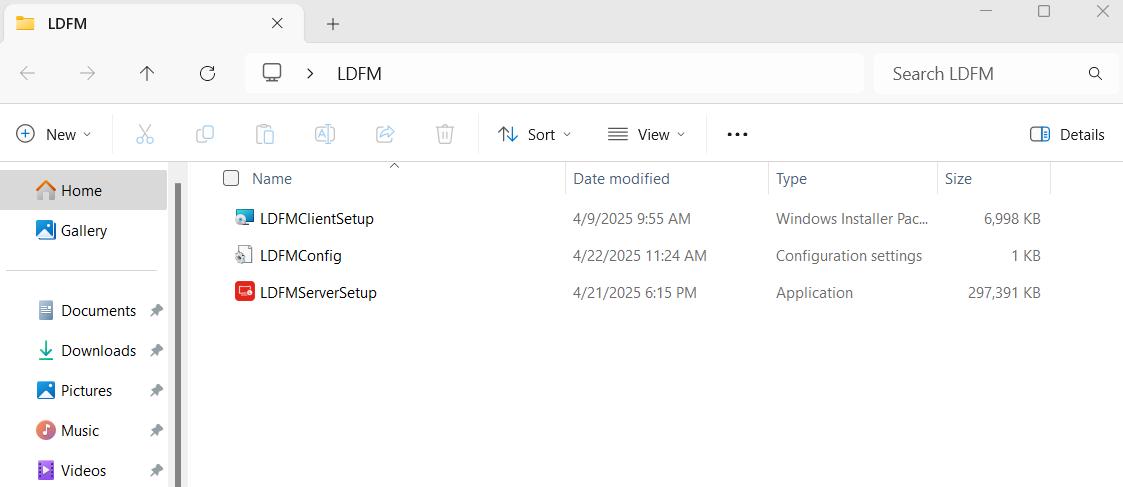installation to the same directory as LDFMClientSetup.exe