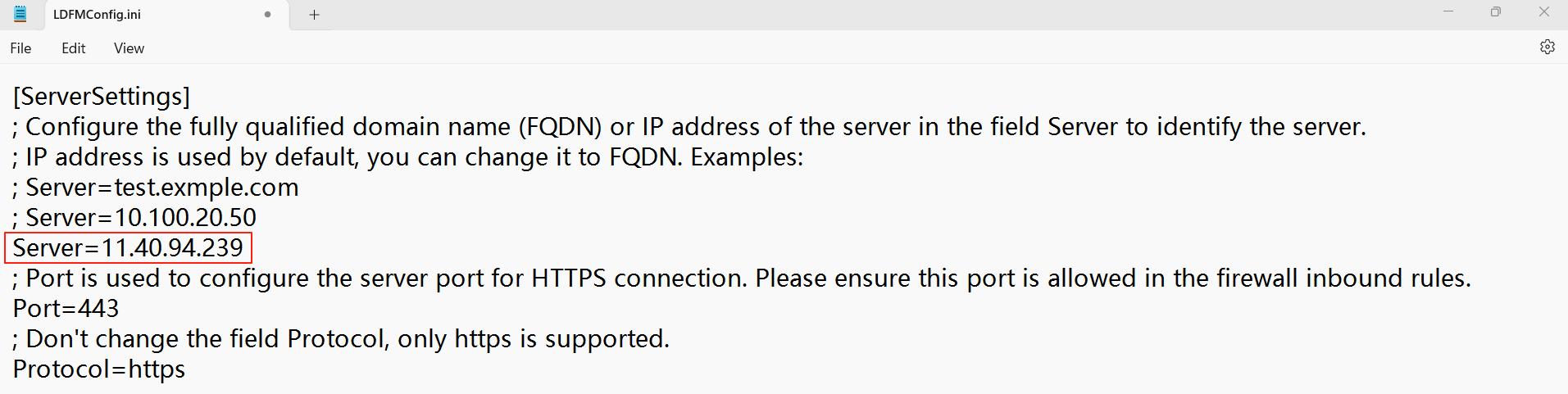 If you need to modify the IP address and port number, double-click the "LDFMConfig.ini" file, make the necessary modifications and save them.