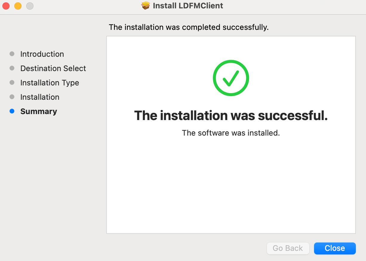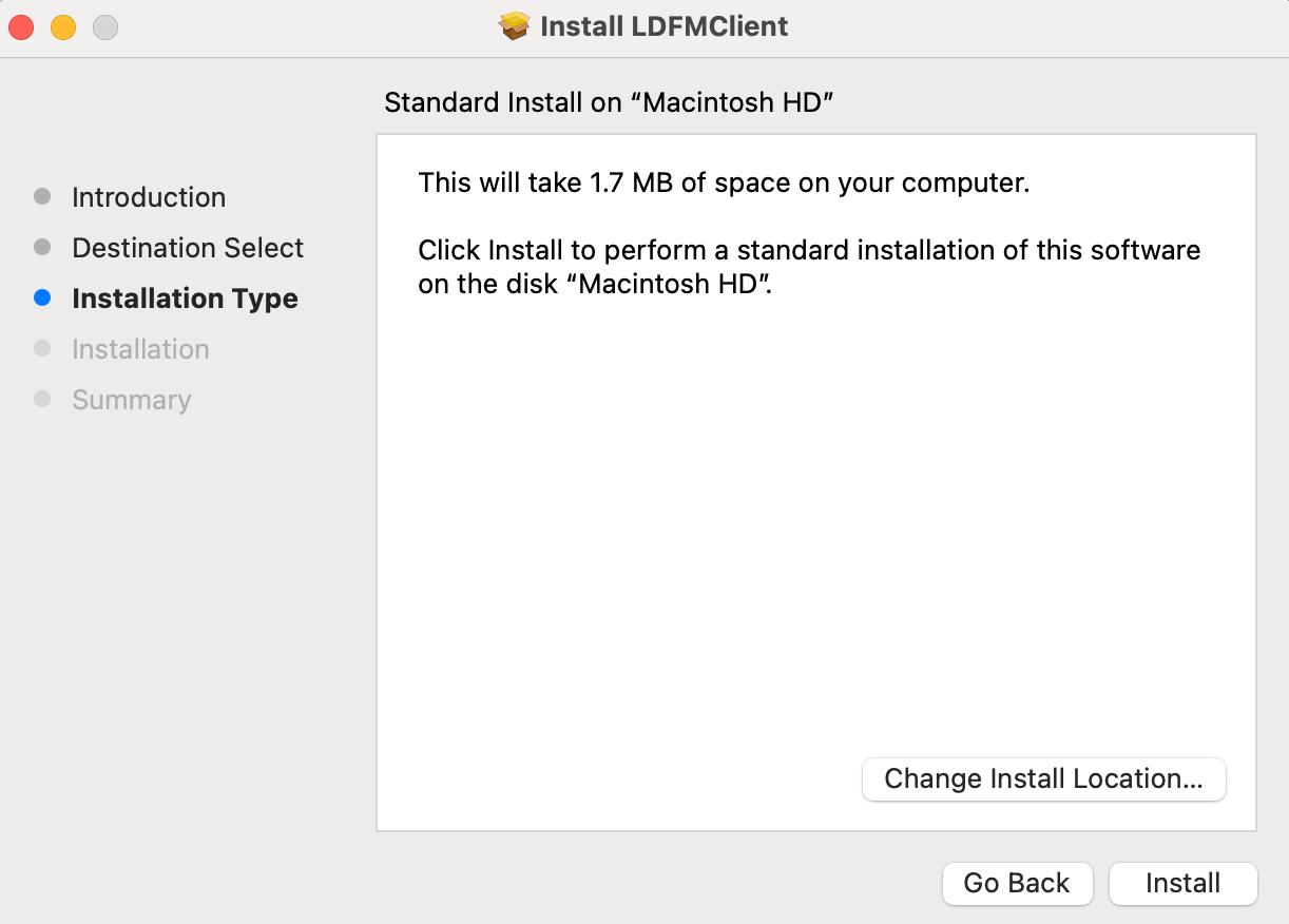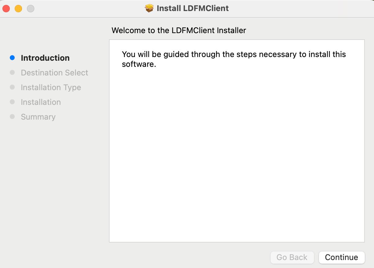 the installation package, which contains the LDFMClient.pkg