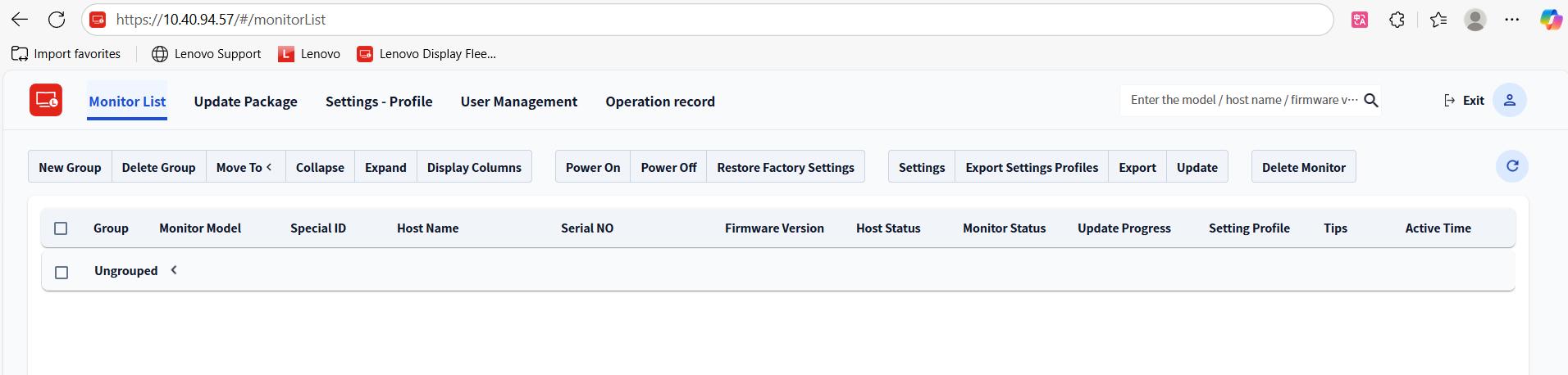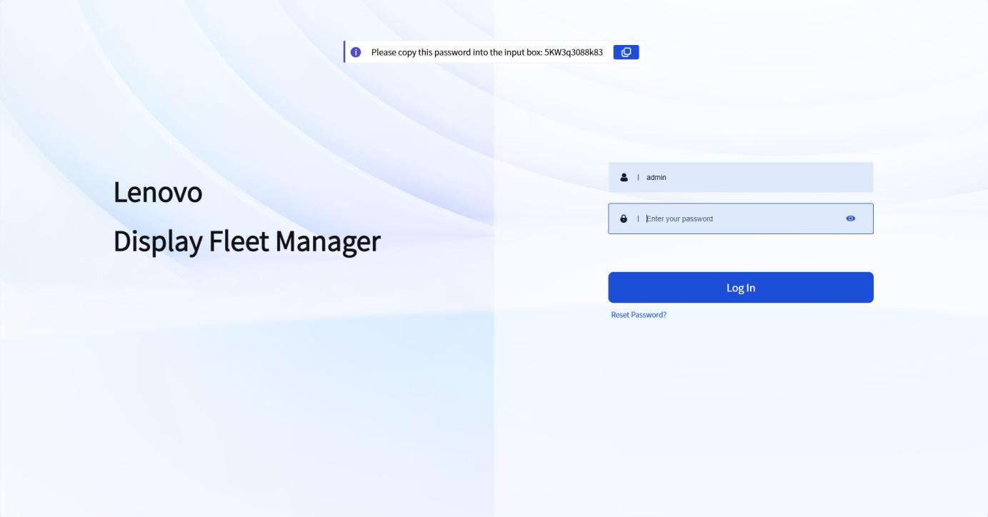 After modification, save the changes and restart LDFMServer. Double-click "Lenovo Display Fleet Manager" in the Windows Start menu. Then open a browser, enter "http://localhost:9300/" and press Enter. You can then access the management page.